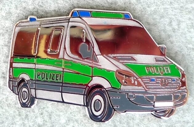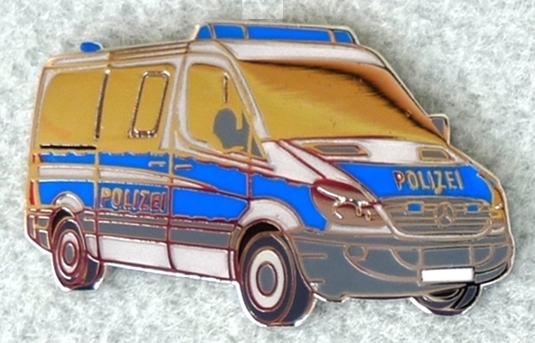 Hartemaile, 32mm x 20mm. Der Sprinter als Fahrzeug der Polizeihundertschaft ist weit verbreitet. Je nach Bundesland jedoch in unterschiedlicher Lackierung und Beklebung.