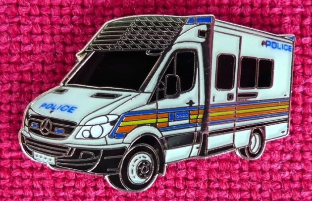 Hartemaile, 32mm x 20mm. Der Sprinter als Fahrzeug der Polizeihundertschaft ist weit verbreitet. Schweizer Ausführung.