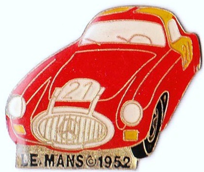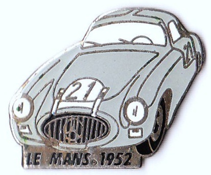 Rennwagen in Grau mit der Nr.21 und Beschriftung:LE MANS 1952 in Silber. Hartemailie W 198 Größe:32mm x 26mm