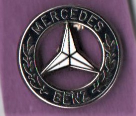 Mercedes-Stern auf rotem Grund; goldener Rand Hinten: Messing glatt Grösse:20,3 mm Dicke: 3,2 mm