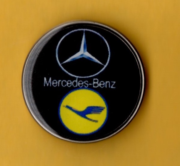 Mercedes-Benz und Lufthansa, schwarz rund, Mit Stern und Lufthansa Logo, 26 mm